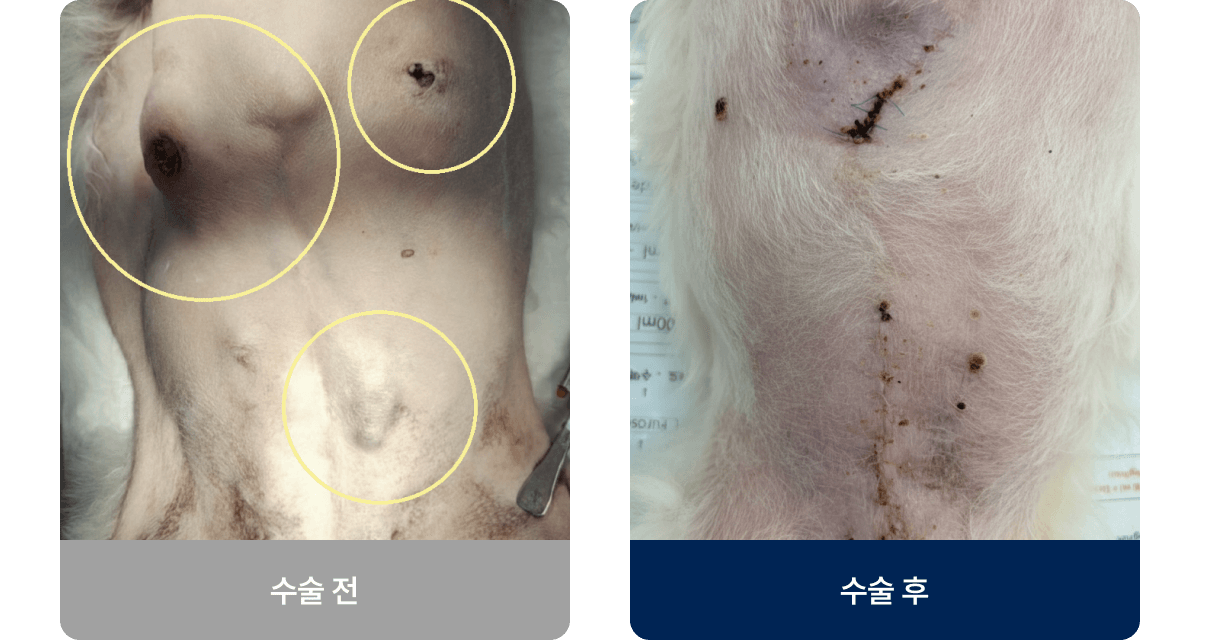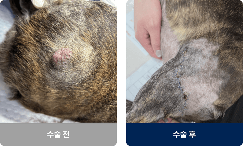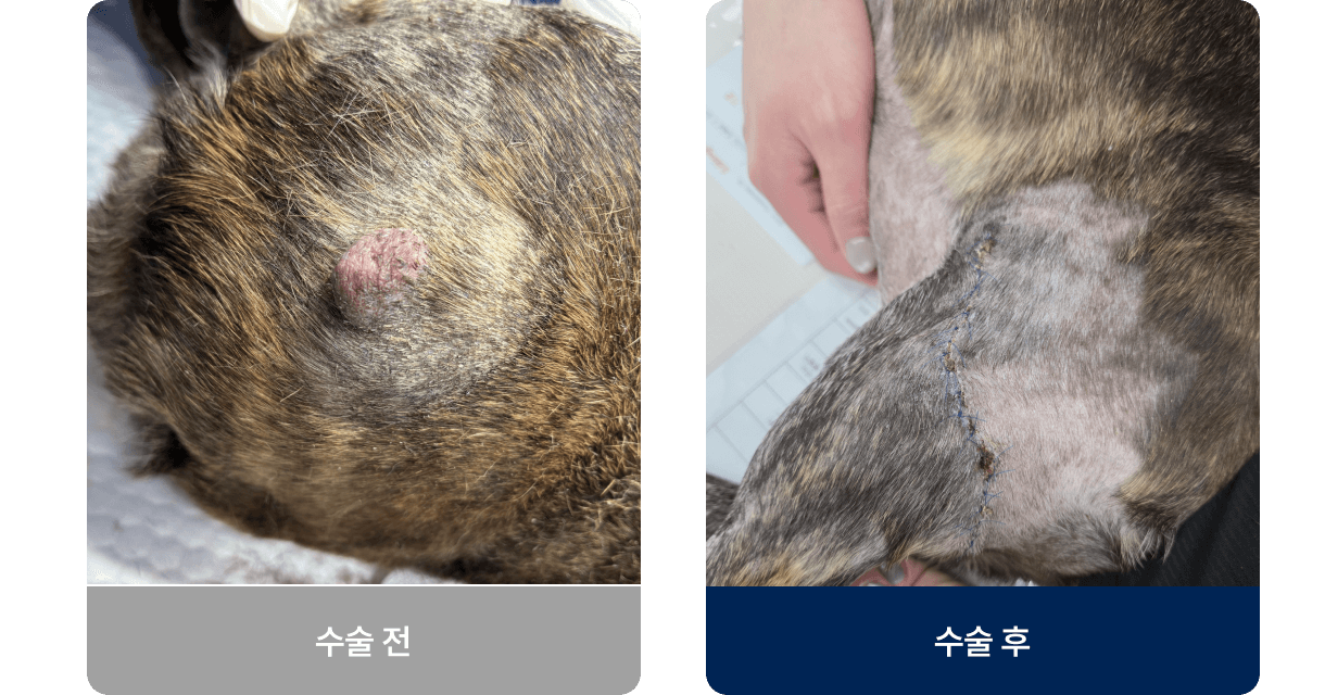 아프리카 동물의료센터는 종양의 특성과 아이의 나이, 체력, 보호자의 상황까지 모두 고려하여 가장 무리가 적은 치료법을 제시합니다. 수술과 항암치료는 아이의 고통을 늘리는 과정이 아니라 통증을 줄이고 더 오래, 편안하게 함께하기 위한 과정입니다.