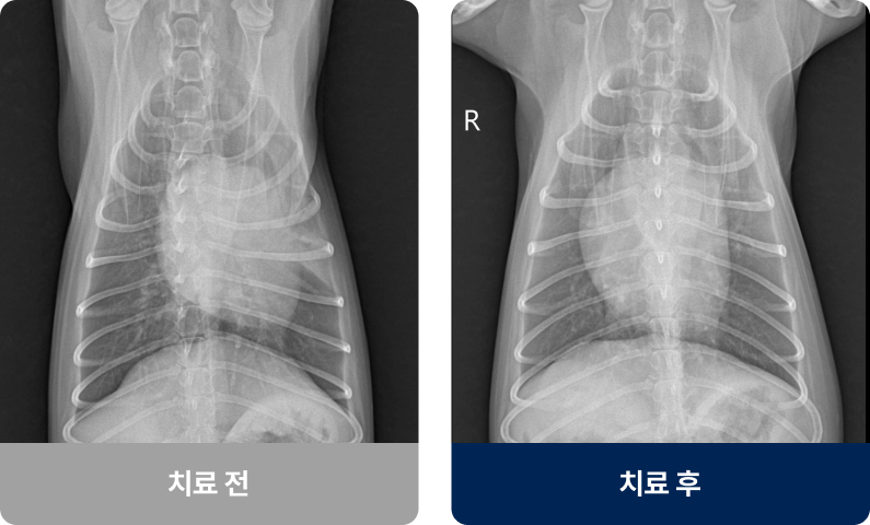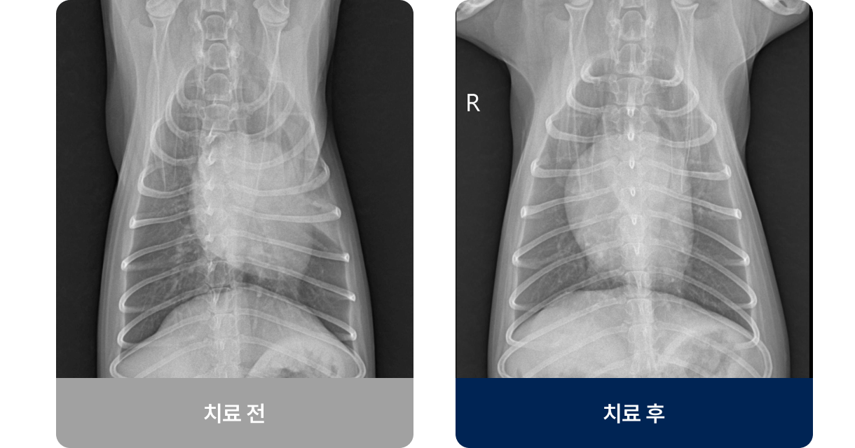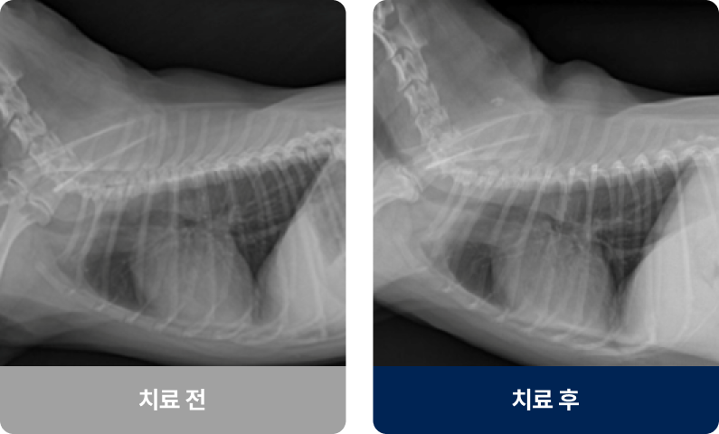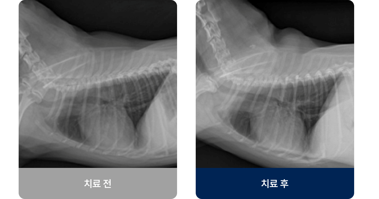 세균성 감염이나 흡인(음식물, 구토물), 면역 저하로 인해 폐에 염증이 생기는 질환입니다. 발열, 기침, 식욕 부진, 호흡 곤란 등의 증상을 보이며 진행되면 산소 부족으로 인해 청색증, 탈수, 쇼크로 이어질 수 있습니다. 특히 어린 반려동물, 노령견은 빠른 치료가 필요합니다.