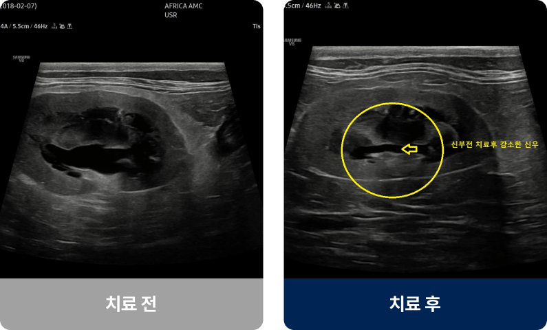 03 생명을 위한 책임, 포기하지 않는 치료 아프리카 동물의료센터는 1%의 가능성이라도 있다면 치료를 포기하지 않습니다. 고난도 종양 수술, 심각한 심장질환, 폐수종, 담도 폐쇄 등 다른 병원에서 어려움이 있다고 전해 듣고 찾아오는 환자들도 정확한 진단과 전문의 협진을 통해 최선을 다해 치료합니다. 생명 앞에서는 타협하지 않는 태도, 그것이 아프리카의 가장 중요한 가치입니다. “희박한 가능성도 ‘기회’로 만든다.” |