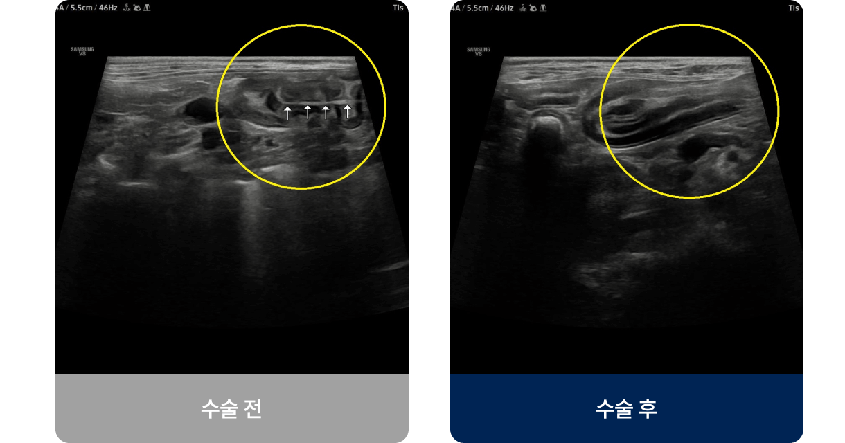장이 완전히 막히거나 괴사·천공 위험이 있는 경우에 시도됩니다.